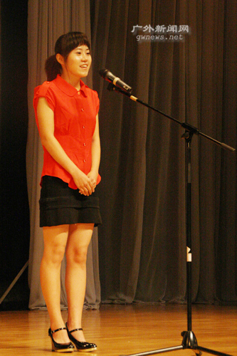 另一位红装冠军韩曙莲则是以《人を大事にする》为题,依靠优雅沉着的气质及深厚的基本功征服了全场评委,高分夺得非零起点组冠军。据了解,这已经是韩曙莲继06年夺冠后出国留学一年后再次荣获最高荣誉。赛后接受记者采访时韩曙莲显得格外谦虚,她表示:“今天的表现有欠缺的地方,演讲比赛不仅促进我的专业学习,而且让我锻炼自己、提升自己。”