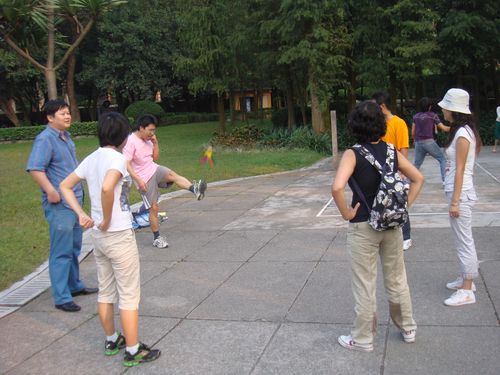 登山中,山上明珠楼风景区成为了教工及其家属们尽情娱乐放松的平台,教职工们踢毽子、打羽毛球或是在树下叙旧聊天,孩子们在草坪上追逐嬉戏。