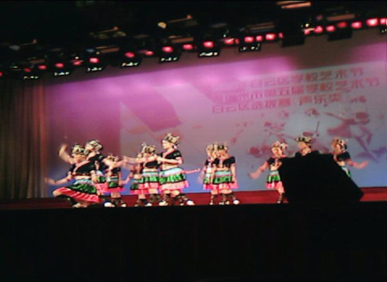 上个学期,外校艺术组接到参赛通知后,经过精心策划,决定以女声小组唱《苗岭连北京》参加中学组声乐专场比赛。胡丹、曾勇两位老师分别承担了声乐辅导及舞蹈编排任务。据两位老师介绍,《苗岭连北京》歌曲富有民族特色,声部处理要求高,加上要载歌载舞、声情并茂,难度非常大。在排练中,师生共同努力,边练边学,克服了这些困难,终于取得可喜可贺的成绩。