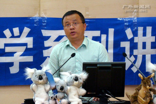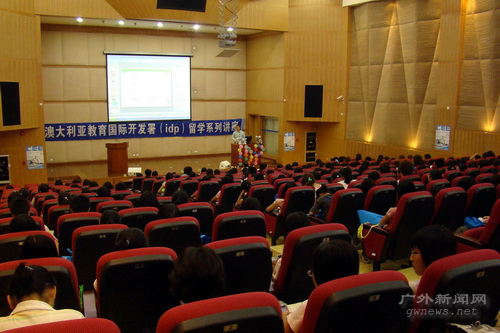 本网讯 10月16日晚上,由我校英语教育学院主办的IDP校园系列讲座在南校图书馆二楼学术报告厅举行。主讲人为IDP广州地区经理朱小兵以及IDP考试推广专员卜文忠。这场讲座结合市场现状为广外学子分析了赴澳留学与就业前景,解答了同学们对留学的诸多疑问。讲座同时还介绍了雅思考试的作用及技巧,并且和同学们分享校友成功留学的经验。