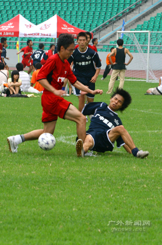在下午的比赛中,乙2组的广外明星队与广中医扁鹊队各打半场好球,最终,广中医扁鹊队凭借7号倪华周上半时结束前的一脚抽射1:0首战告捷。而在上午率先开战的一场比赛中,甲2组的广外足协队1:4不敌华师球协队。