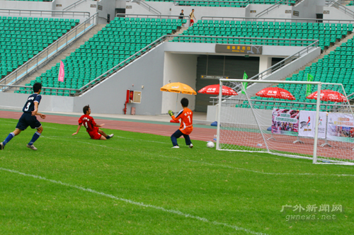 距全场比赛结束还有2分钟时,广外明星队展开最后的的攻势。替补出场的5号叶志刚中场接队友张嘉宏传球,横向带球后低传给右路的王麒彰,王麒彰得球吸引了对方门将的注意力,将球横传给左侧的邹琳清,几乎是面对空门的邹琳清起脚劲射将球打偏,广外明星队失去了扳平比分的最后机会。