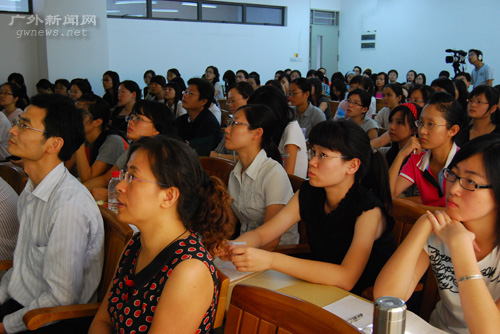 讲座最后,江则忠一句“我父母生在广州,今天我来到广州,感觉就像回到了家一样,我感觉很舒服”,拉近了和听众的距离,师生纷纷提问探讨,现场互动气氛热烈。采访中师生都表示受益匪浅。一名来自教育学院的王老师说,这次讲座角度深远,打破了她对“互文侵殖”的传统理解,第一次思考到“互文性不是一种语类对另一种语类的侵殖,而是可以互相协调的,没有既定界限的平行关系”的问题,给她带来了很大的启发和思考的空间,印象很深刻。