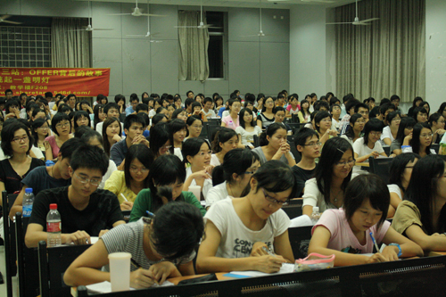 现任P&G销售经理的宋菲,与大家分享了她的梦想,并从大学生活、求职以及工作以后的心路历程三方面讲述了她自己的故事。“My dream is to be a professional business woman, to lead a balance life and to make others’ life more easily.”为了实现自己的梦想,宋菲从大一就开始积极的尝试,度过了丰富多彩的大学生活。她建议大家,要在大学期间学会突出自己的强势和减化自己的弱势,以积极的态度去接受挑战,并主动接触社会。
