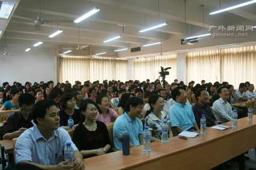 出席本次讲座的嘉宾有佛山市委宣传部有关领导,我校副校长方凡泉,校人事处领导,新闻学院院长郭光华以及学院党委书记胡文涛。讲座由郭光华主持。