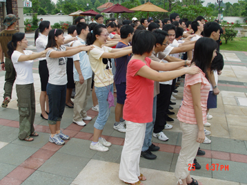 在环境清幽的万科云山,青年教师们被分成三个团队分头进行活动。在手牵手团体解结、快速点数、仙女散花等多项趣味游戏中,大家体会到了轻松与快乐。而5时开始的幸运大抽奖活动,更使得大家的兴致达到新高潮。31位幸运儿分别抽中了电烤炉、餐具,以及挂饰等精美奖品。大家饶有情趣地品尝了中西结合的自助餐饮,在充满和谐与惬意的休息区度过了一个轻松的下午。