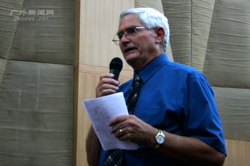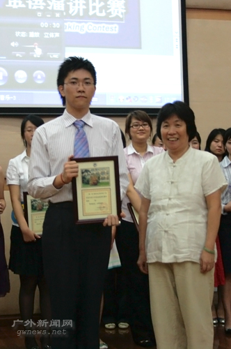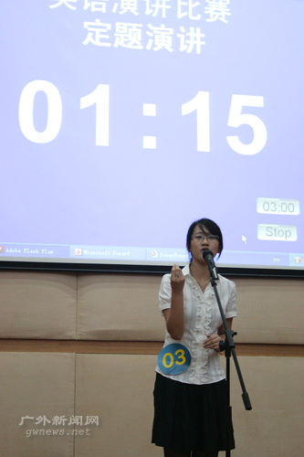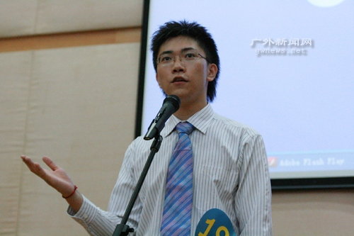 本网讯 9月18日下午,我校2008英语演讲比赛在南校区图书馆二楼报告厅举行。此次比赛由我校主办,校团委学生学术科技创新中心承办,来自南北校区的23名英语精英参加了比赛。李海丽、冯光武、张燕,陈开举、高琰,钱芳同外教Richard 、Eberhard担任比赛评委,Eberhard 和王伟强老师作为Question master出席了比赛。