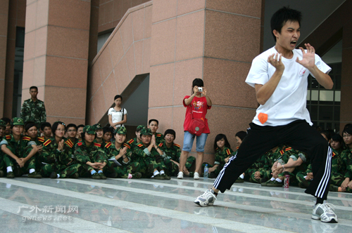 财会协会的数青蛙则把整个慰问推向了高潮,“一只青蛙一张嘴,两只眼睛,四条腿,两只青蛙……”,弄糊涂了许多新生;足球协会的“射踢球门”也让不少新生感受到了踢足球的乐趣;职协的“画树”游戏帮助同学更好的认识自己,给将来的职业规划奠定了基础。