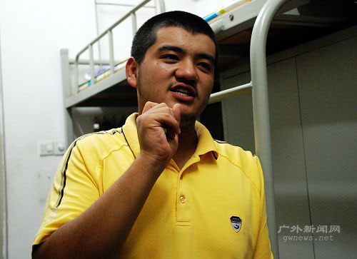 与张澍宏同宿舍的,有一位是今年四川缓考后考上广外的四个四川学生之一——郑佰渠。目前为止四川地区不时仍有余震,郑佰渠远在广州,四川的父母还是相对安心的,反而是他比较担忧在家中的父母。