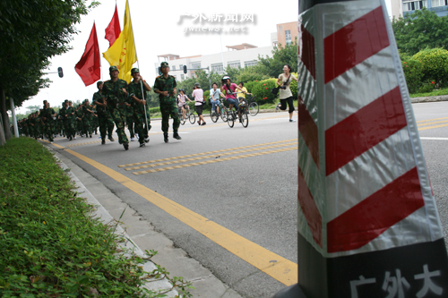 编者按 “苦不苦,想想长征两万五;累不累,想想革命老前辈!”……9月11日下午,一年一度的环大学城拉练,在新生们激情澎湃的口号声中拉开帷幕!烈日酷暑难敌出发前的气宇轩昂,挥汗如雨只为胜利后的振臂高呼!蜿蜒的长龙、飘扬的旗帜,记录下我们挥洒汗水的青春;主动的搀扶、细心的呵护,见证着我们无微不至的关怀!