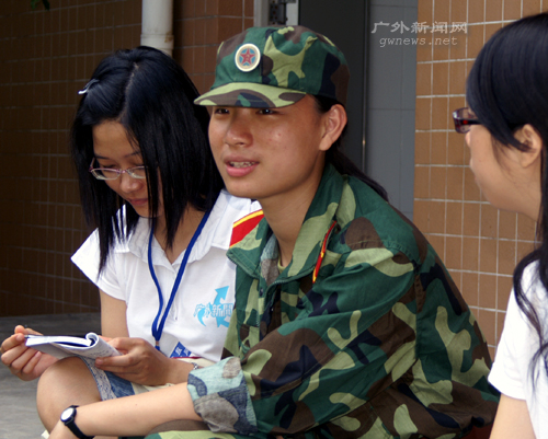 每位新生都会特别珍惜这难得的十六天,来自英文学院的小王情况则比较特殊。小王两个星期前刚刚做完手术,但是身体虚弱的她却和其他同学一样坚持训练。
