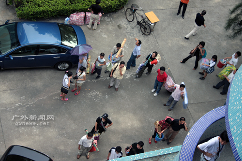看着楼下的人用小汽车、用单车、用手提着、拉着、推着大包小包的时候,小吴打趣地说了句:“努力吧,我在楼上等着你!”