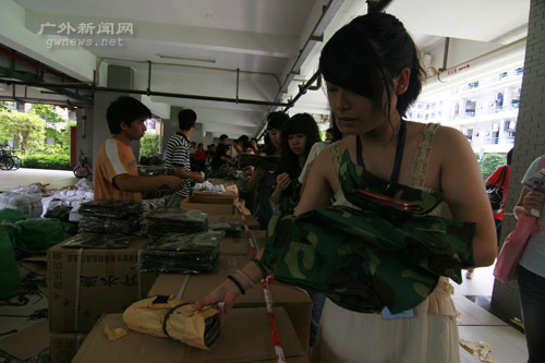 在7、8栋宿舍楼下的军服购买处,已经有许多人领到了自己的军装。其中有一位军人的妻子,来自深圳的杨女士谈到,自己的孩子就生活在军人的家庭,以前有接受过这方面的教育,所有对即将开始的军训并不担心。