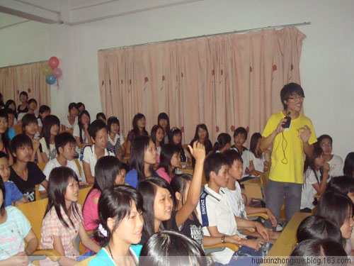 怀新中学学生也不甘示弱,他们也努力展示着自己的“学贯中西”。中文朗诵《奥运中华》表达了同学们满怀激情迎接奥运的心情;英文朗诵《think it over》告诉大家,要学会思考,享受生活;一首《123木头人》展现了初中生的年轻活力和青春风采;还有一曲英文歌《love paradise》唱出了几分温馨和幸福。学生们的精彩表演让全场观众沉浸在欢乐的海洋里。