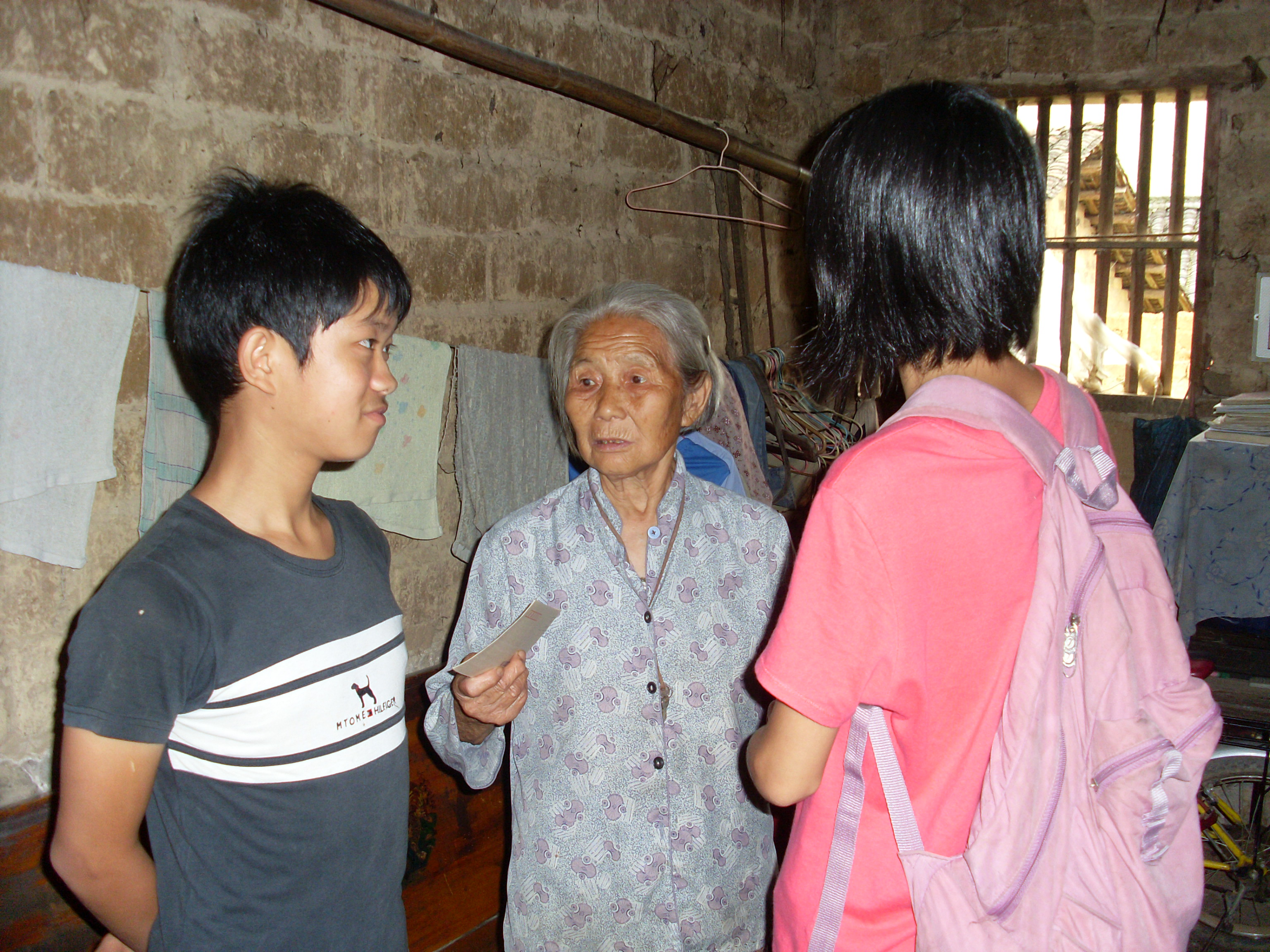 本网讯 7月19日下午,韶关梦飞扬全体队员在应山村村委会干部的带领下,探望该村十一户孤寡贫困老人,并送去慰问金和物资。通过这次走访以及在平时教学的观察中,有一位叫白寄平的学生给队员刘毅留下深刻的印象。