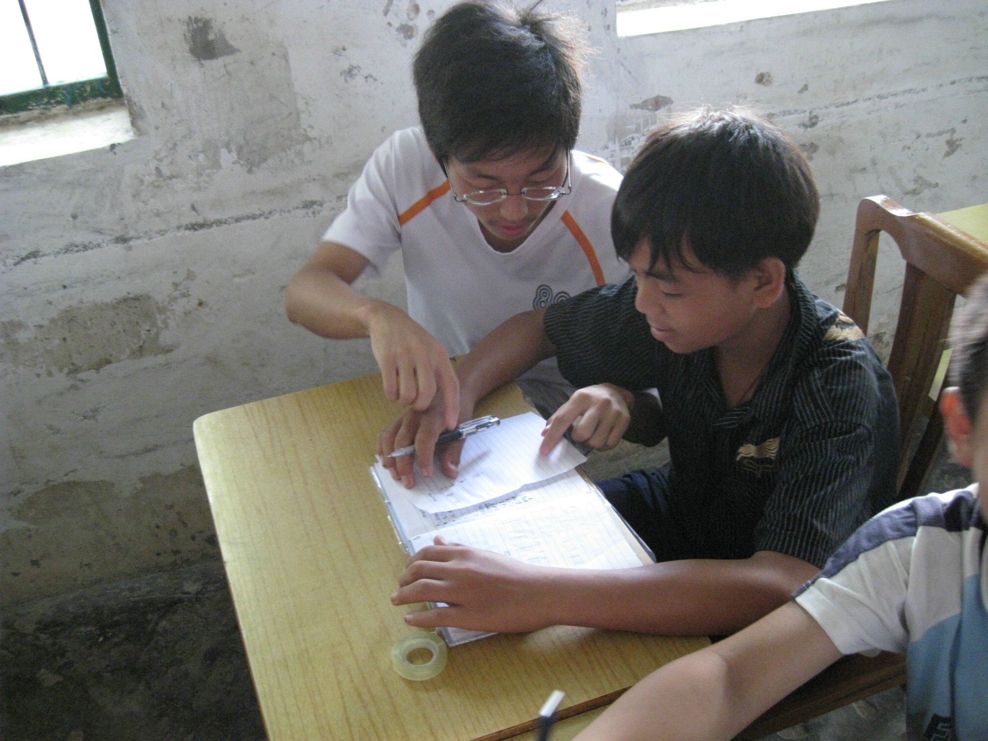 在李康正的带领下,穿过长长的深巷,义教组的两位队员来到了李康正的家里。他的父母都在外工作,只见到他的表姐。在交谈中,李康正的表姐告诉队员,康正在家是个很听话的孩子,体贴父母,照顾年老的爷爷奶奶,对邻里也很热心。但由于父母文化水平都不高,姐姐又在外地工作,很难在学习方面给康正辅导和监督,一切都只能靠康正自己。家里人把希望寄托在学校,希望老师们能够多多辅导他,让他在学习上迎头赶上。