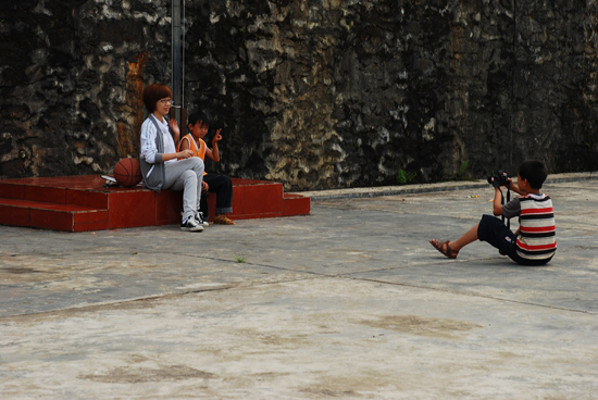 操场上斑驳的墙反射着翠绿的阳光,顽皮如流水的阳光漫过叶片,在空隙处散下几点温暖。