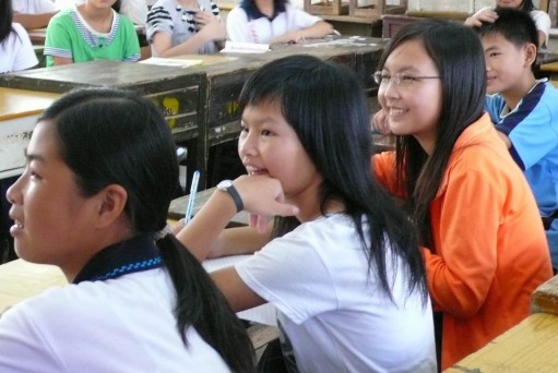 课堂上,孩子们总是专注地望着老师,欢乐地微笑