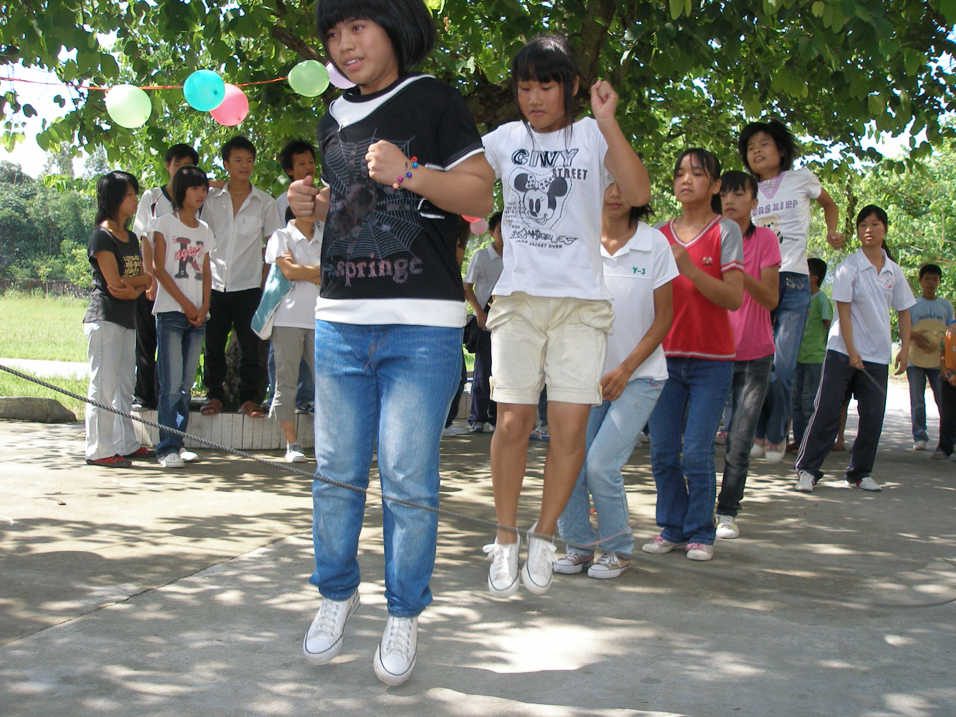 集体跳绳则由各班派出8名代表,两名摇大绳,6名集体跳,在两分钟内跳的个数最多的为赢者。参赛的同学摒住呼吸,用尽全力地跳,其他同学拍着瓶子奋力为本班参赛同学加油。