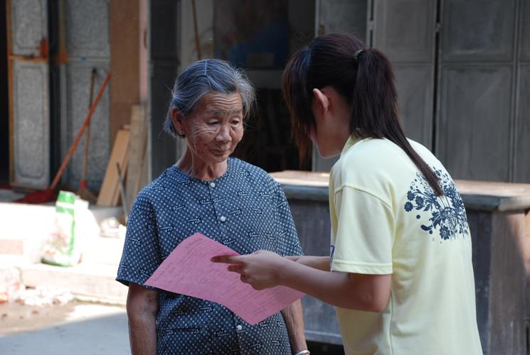 各种写有生活小窍门,健康安全常识以及奥运等知识的传单,随着两队队员们走街串巷,一一下发到村民的手中,不少村民拿着宣传单前来问询,还有许多小学生前来热心帮助宣传。