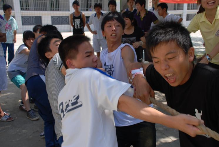拔河时间永远都是最激动人心的时刻,“1,2,拉!”,“加油!加油!”的声音在树荫下高高低低,此起彼伏。“1,2,3,开始!”。
