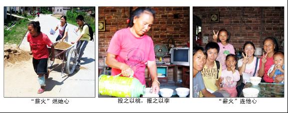 在回来途中,队员们偶遇一位推着小车、大汗淋漓的老太太,便不由自主地跑上去帮忙推沙车,事后,老太太盛情邀请队员们到她家喝瑶家茶,这也让队员们深刻体会到瑶族人民的无限热情。