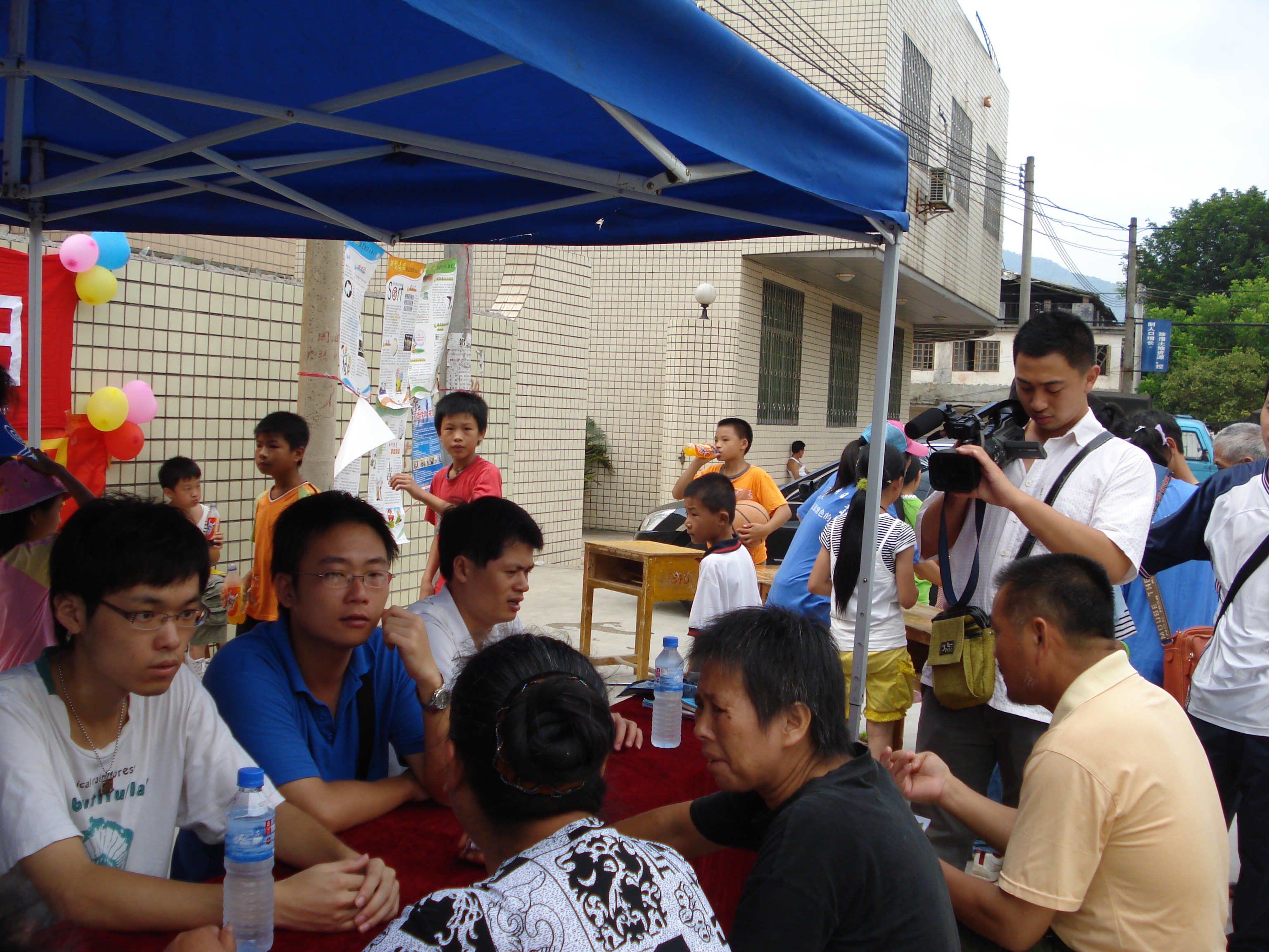 当天上午,法学院together服务队与周田镇政府司法所一起举办了大型的普法宣传活动,韶关市仁化县电视台拍摄了活动全过程。一大早,服务队的各路人马就开始进行准备工作,有的布置会场,有的在大街上宣传,县领导们也早早过来帮忙准备。