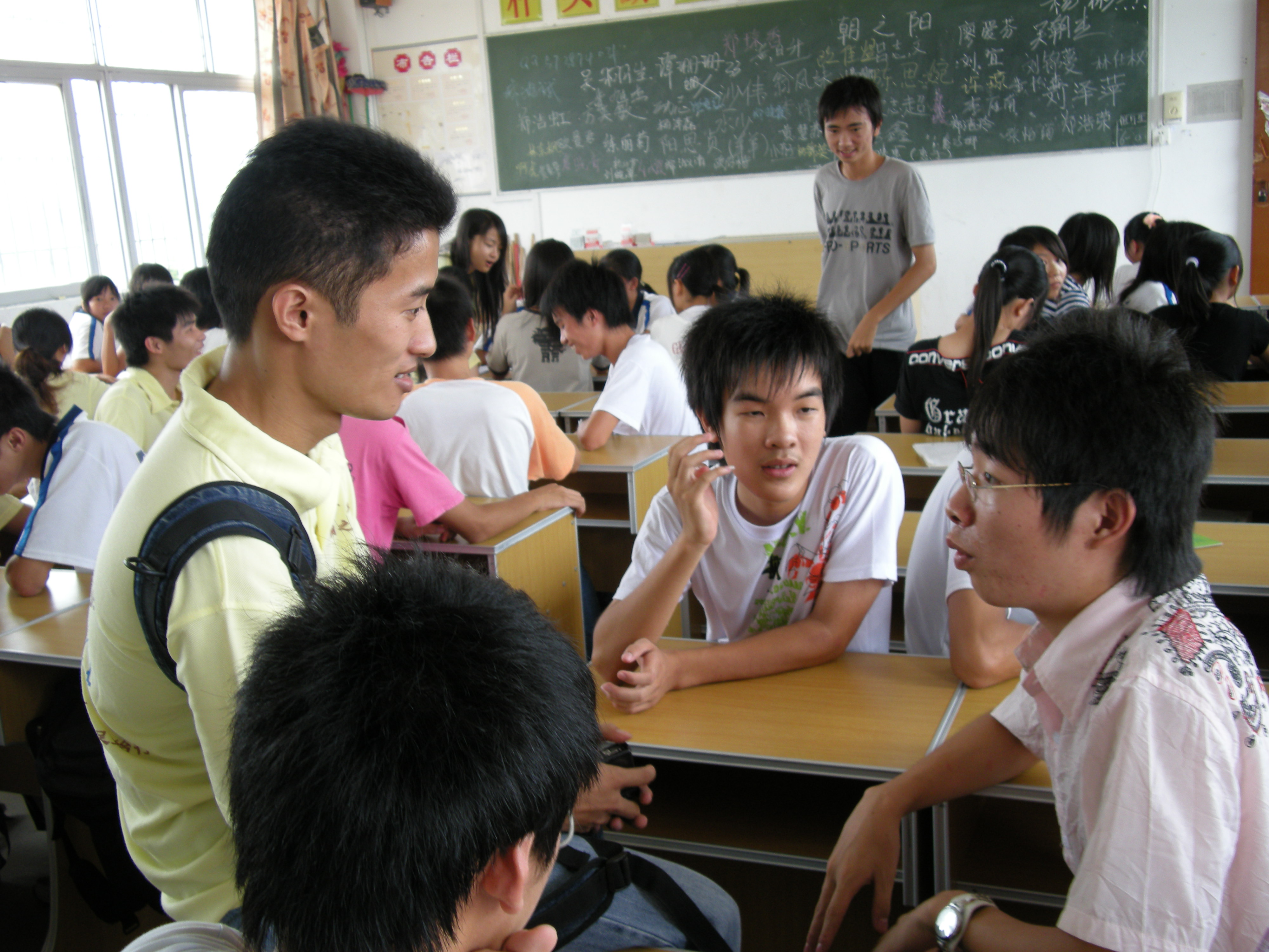 为了配合三下乡活动,中学专门组织了部分学生留校听课。陈校长希望服务队员们在充分发挥英语特长教学的同时,能够更多地与学生沟通,听取意见,及时调整教学方案,使自己教授的课程能更贴近学生的具体实际。