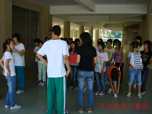 学生们已经习惯了大班教学,习惯了老师在上面讲,下面的学生想听就听,不想听也可以浑水摸鱼。“小老师”识破了他们的“小算盘”,决定来个小班教学。组长龙素云亲任总教练,选了几个身强体壮的队员进行“魔鬼式”训练。每班配备了至少两名老师,实行“一对五”管理模式。这样一来,学生都只能服从命令了,都跟着老师的步骤学习一招一式。