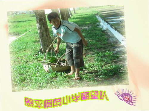 五年级的小朋友们刚刚离去,四年级的小朋友们便又出现在操场上。他们有模有样地随着班主任陈万芳来到室外打扫落叶。干起活来,他们那股不肯认输的劲儿让你刮目相看。扫地,他们争着扫;打水,他们抢着提。在阳光下,他们那晶莹剔透的汗珠似生命真谛。