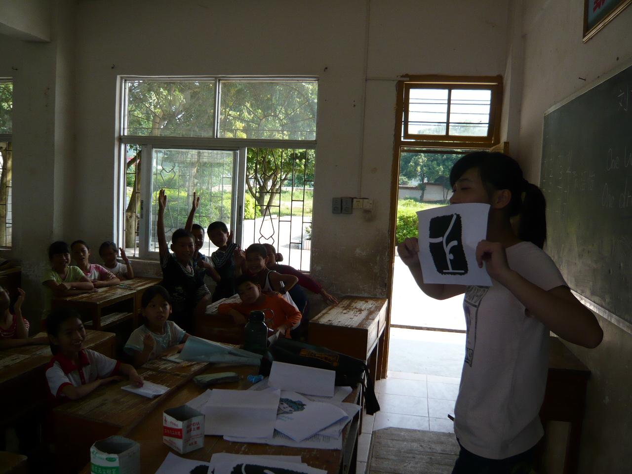 开学典礼结束后,各班班主任对学生进行了分班、编排。当天下午,服务队的义教活动正式开始。小学生热情好学,早早地就来到学校,与老师们交流谈心。第二天上课时,还不时有家长带孩子前来听课。课堂的实际人数已远远地超过了队员们的预期。但队员们仍尽力为每个孩子安排妥当,力求让每个孩子体验到义教课堂的乐趣.