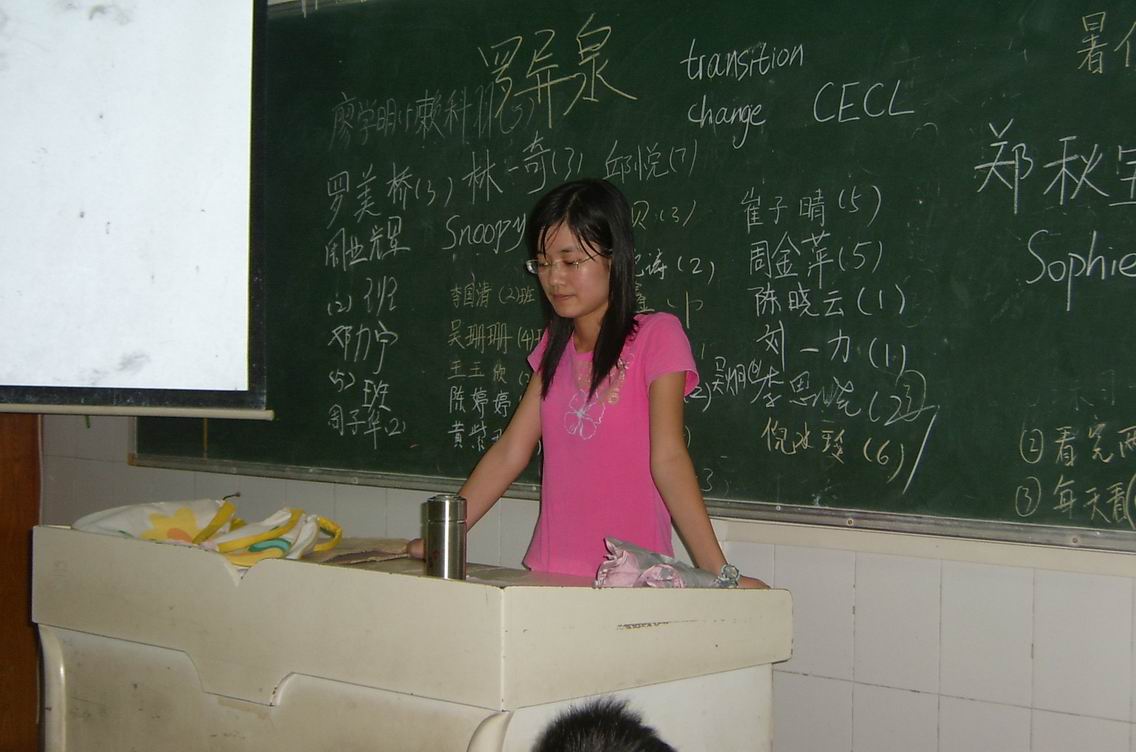 二班由秋宝老师上综合英语课,虽然第一次站在讲台上,但是秋宝胸有成竹,整节课都安排得条理清晰。同学们的反应相当热烈,时时提问。