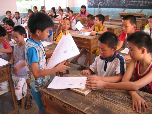 下午则是游戏集锦,队员们第一次跟小孩子真正接触并打下友谊基础,简陋的教室不时传来阵阵欢笑声。通过活动,孩子们都愿意把队员们当作大哥哥大姐姐。