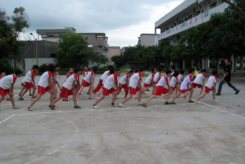 8:40,运动员进行曲正式响起,同学们在仰卧起坐的比赛现场进行赛前的准备运动。当比赛哨声响起,参赛者争先恐后地做起仰卧起坐。啦啦队亦不甘示弱。B班的同学还准备了口号——“B班必胜,祥若如龙”,气势压人。最后,B班以小小优势胜过了A班。