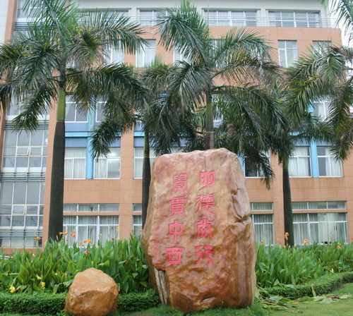 校训石从定购、运输、吊装到篆刻共花费人民币4.8万元。石材属黄蜡石,高3.4米,宽1.7米,厚1米,重达21吨。其坐落在南校区教学楼A栋前的草坪,地处于教学区和行政区的交叉点,引人注目。该校训石凝聚了2008届毕业生对母校的深情厚意,是我校收到的最珍贵、最有意义的毕业生赠礼之一。