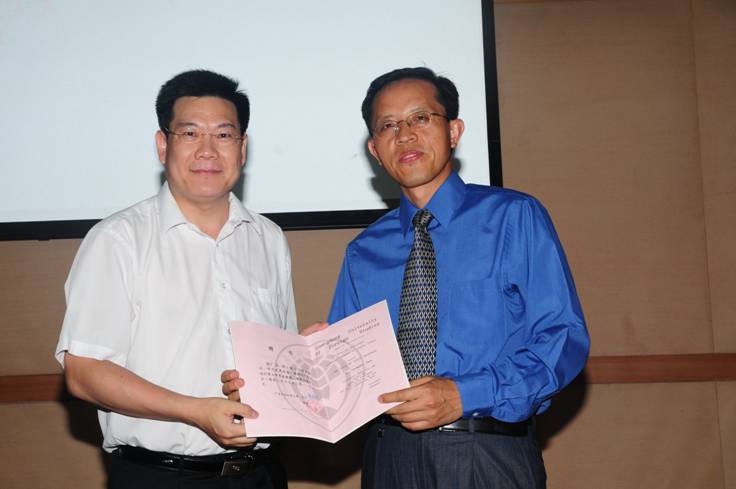 仲伟合副校长向赵广志博士颁发广外大客座教授聘书