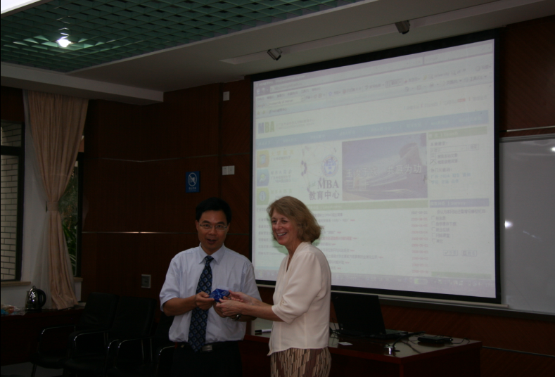 在国际交流处副处长梁洁的陪同下,客人们参观了我校MBA教育中心,并和我校部分MBA学生及经贸学院研究生一起座谈交流。座谈会由MBA教育中心执行主任黄磊主持,副主任吴易明参加了座谈会。两校学生们围绕“我为什么选择了MBA”这一主题进行了互动交流,畅谈MBA教育问题。