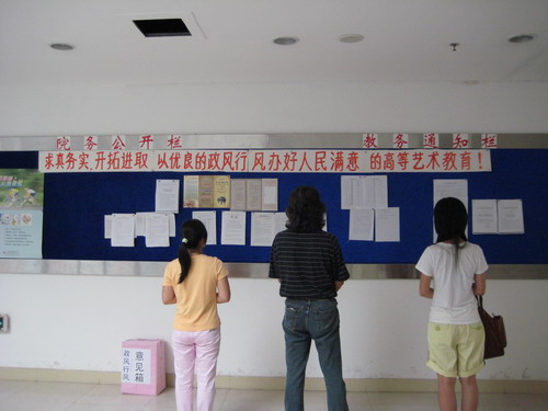 本网讯 艺术学院根据校党委的统一部署,注重联系实际开展政风行风评议工作。学院先后在党政联席扩大会议、全体教工大会、党员大会等范围进行动员,并注意做好宣传工作,通过张贴宣传标语、设置征求意见箱,利用橱窗、板报、校园网等阵地进行宣传等方式,积极营造良好的氛围。