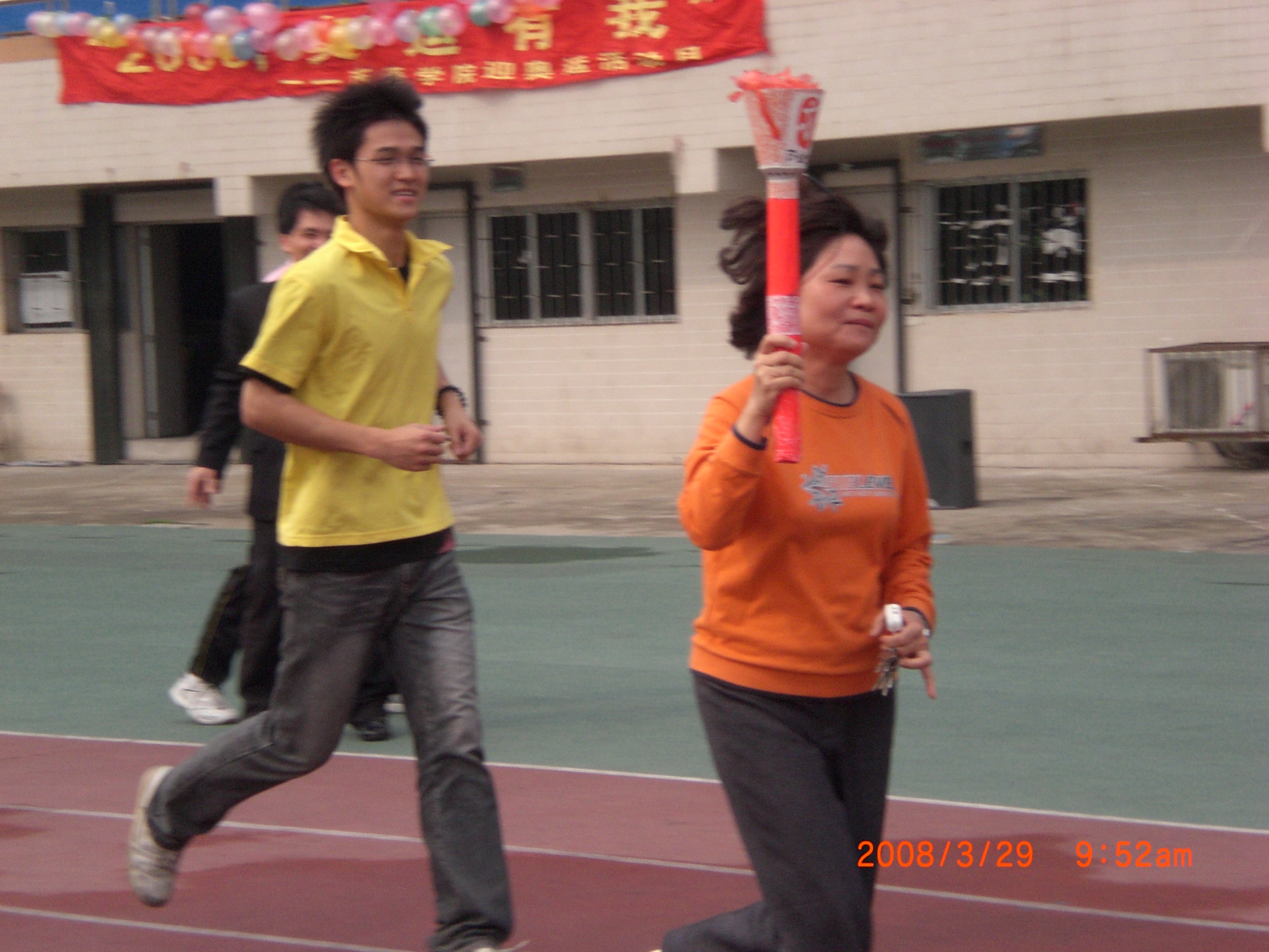 随后东语学院3月22日举办了“2008,奥运有我”火炬传递启动仪式暨师生联谊体育节。体育节的特色节目是“奥运火炬模拟传递”。校园奥运火炬手从北校区足球运动场出发,沿校园各主要校道,开始了火炬传递之旅,模拟感受了传递奥运火炬的神圣。东语学院的学生会副主席邦润同学表示在组织“奥运月”活动表达东语学子对2008北京奥运的向往和支持,让每一位同学都能感受到奥运气息,将奥林匹克精神发扬到每个同学的身边。