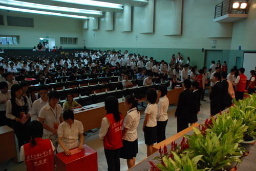 下午5:30,校学生会副主席梁馨月同学致闭幕词,第七次学生代表大会伴随雄壮的国际歌降下帷幕。