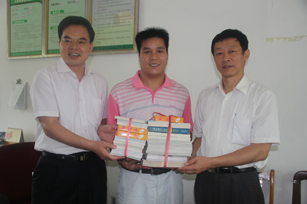 领导代表服务队捐赠图书给当地留守儿童