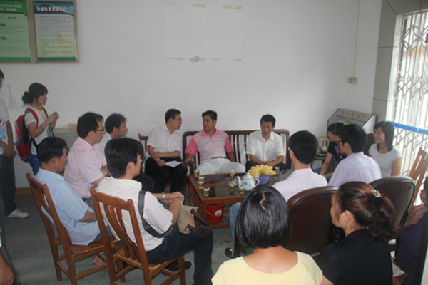 本网讯 7月28日上午,我校党委副书记许国斌、就业指导中心主任赵烨、学生处处长植秀聪、副处长杨敏生及校团委副书记何越晖亲赴增城市小楼镇,对学生勤工助学中心“勤”怀增城服务队进行了亲切慰问。大学生村官网络团委宋俊文、小楼镇团委副书记吴杍俊、小楼村助理张宇恒以及小楼镇腊圃村党支部副书记赖锡明热情接待了我校领导,并召开了一次简短但意义重大的座谈会。
