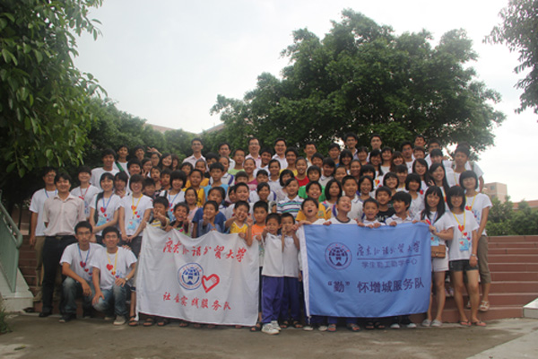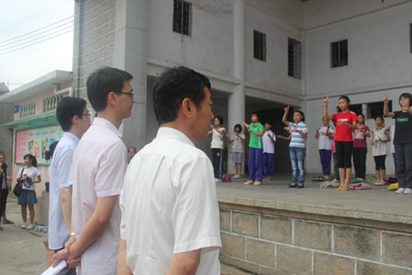 在学生代表的陪同下,许国彬等领导全面视察了“勤”怀增城服务队三下乡各项活动开展的情况。他们首先察看了本次义教的教学情况,对学生的琅琅书声表示十分满意。在与小朋友的交流中,许国彬叮嘱他们要努力读书,将来要像这次三下乡的哥哥姐姐们一样为社会做出贡献,并与小朋友们合影留念。