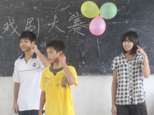 比赛以party up队员的惊艳sorry舞开场,幽默诙谐的动作和充满娱乐精神的四名队员博得全场学生和老师的热烈掌声。这样轻松活泼的气氛一直贯穿整个活动过程。比赛以班级为单位参赛,分为小学组和初中组共四组进行。为了展现party up英语夏令营的特色,戏剧表演的台词全部由英文写成。每个班都很早就开始了戏剧的前期准备工作。
