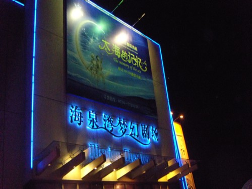 晚餐过后,领导们坚持当了一回“导游”,带领我们到珠海著名度假村——海泉湾游玩。晚餐过后,外面虽然下着大雨,但是校领导们依然要坚持带我们看看海泉湾。雨淅沥沥地下,我们坐着校领导的车向着海泉湾进发。经过一段短暂的车程,我们到达了海泉湾。海泉湾度假村里的建筑别具一格,让我们感觉像是走进了童话世界。度假村里有美丽海景,五颜六色的迷人灯光,海岸边的特色桌椅很有一种欧洲情调。度假村里面还有温泉,温泉的门口的灯光和建筑有一种温暖的气氛。我们看到这么美丽的地方,都迫不及待地合影。校领导们向队员们讲解度假村的建造历史,我们就一路谈笑风生。