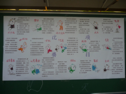 2010亚运会在广州乃至整个中国闹得如火如荼,为了让民安的孩子们系统地了解更多,我们在赛场旁的宣传栏展有亚运知识小百科,选手和观众们在赛事的休息期间都踊跃地跑来阅览,而负责该宣传任务的队员们则耐心地给他们讲解,传达体育精神,分享亚运盛事的点点火花。