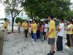 夏日的高温比较容易导致中暑等问题,我们精心准备了凉茶,解暑之余还是选手们的解渴之物。在宣传栏旁的球桌上,医疗组的队员们分组写上比赛队伍的各人名称,每个人的纸杯乘着凉茶整齐地放在上面,散发着热气。有的人捧上一杯在树荫下阅览亚运知识,有的匆匆地跑来把凉茶拿去,为完赛的队员送上及时的关怀…阳光下绿荫中多么和谐地一幅画啊!我们的医疗组队员还准备了个小药箱,有备无患。真够细心的啦!