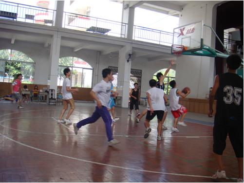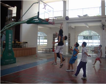 本网讯 7月25日,广东外语外贸大学“夏之约”全明星赛于蔡朝坤中学体育馆华丽上演。势均力敌的1、2班和3、4班分别组成A、B两支强队,一场众人瞩目的全明星赛在一声哨响之下炫亮登场。在双方以39:39打平的情况下,不得不进入2分钟加时赛,最后,B队以2分的优势取得本次全明星赛的胜利,而A队的周志浩则凭借其出色的综合素质夺得本次全明星赛的MVP称号。