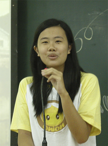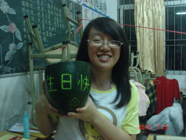 的确,onion队的下乡之路是如此地坎坷。住在简陋的教室里,在教学楼的公共洗手间里洗冷水澡,又因为虫毒全体队员进了几次医院,还要涂着一身的药膏,忍着疼痛给学生们上课。但这一切,队员们都挺了下来。还记得,全体队员们在医院里打吊针的时候一个队员转过身子低着头在抹眼泪,几分钟后又一脸笑容地鼓励着大家。而作为队长的觉晓,在这整个过程中,她的担当无疑是最重的。在知道队员们的皮肤开始腐烂的时候,她顶着饥饿以及一身的疲累带着队员们去医院;在队员们的病情没有好转的时候,她又冒着风雨带着队员们转了医院;打听队员们病情的时候,她总是会苦叫一声,在得到病情有所好转的时候,她的笑容又是那么地灿烂。在下乡的短短几天里,她所承受的,决不比其他22个队员的病痛更小。在这个小小的生日会上,终于她的眼泪决堤,几日以来无言的沉重也终于释放了出来。