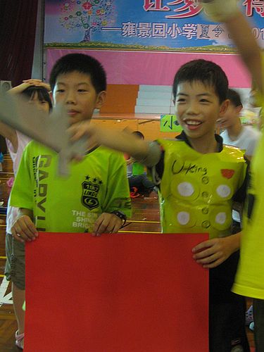本网讯 7月24日,雍景园U-king服务分队在雍景园的风雨球场举行了一场别开生面的小世博会。上午9时,学生们都聚集在了场馆内,焦急地等待着这场趣味的“世博会”。